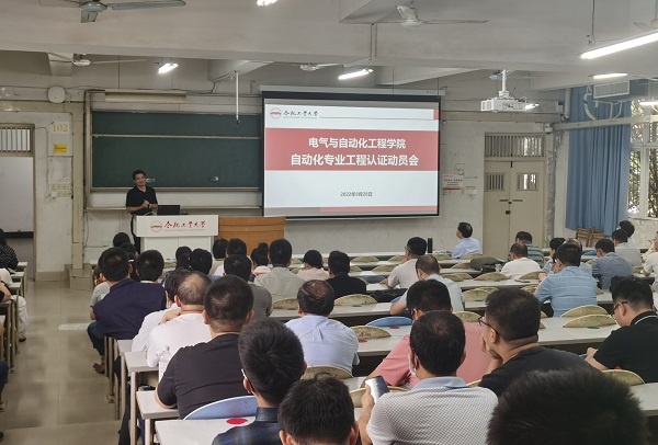 教学副院长黄海宏对自动化专业工程认证工作进行了动员。据悉,此次自动化工程认证工作在线上开展。黄海宏分别从教师层面、学生层面、毕业生和用人单位层面、学生学习成果审阅、教学条件与教学管理考察等方面,详细介绍了专家组开展认证工作的内容,并结合去年电气工程专业认证中的经验和做法,详细说明了几点注意事项,并对自动化专业工程教育认证学院前期准备工作做了明确布置。黄海宏指出,专业认证工作对学院人才培养和专业建设具有重要意义,全体教职员工要齐心合力、分工合作、全力推进。