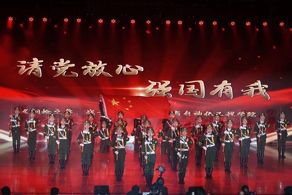 《钢枪之舞,战士之魂》是一支军旅题材的舞蹈节目,紧紧围绕“请党放心,强国有我”的主题,以战士与钢枪的故事为切入点,生动地演绎了战士们勇往直前的坚韧品质,以及保卫祖国的雄心壮志。舞台上,29名电气学子身穿礼兵服,手握钢枪,刻画着战士们的军旅生涯,组成了一支坚不可摧的队伍。他们的步伐整齐划一,口号回音嘹亮,目光坚定有力,热血持续沸腾,使在场观众深受震撼。