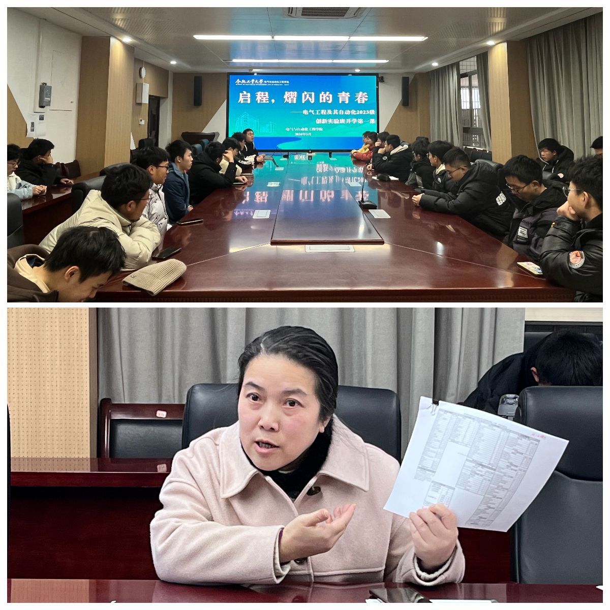 2月28日,电气与自动化工程学院组织开展“创新 成长 报国”2023级创新实验班开学第一课,学院党政相关负责人、相关负责老师、教务员参加活动。