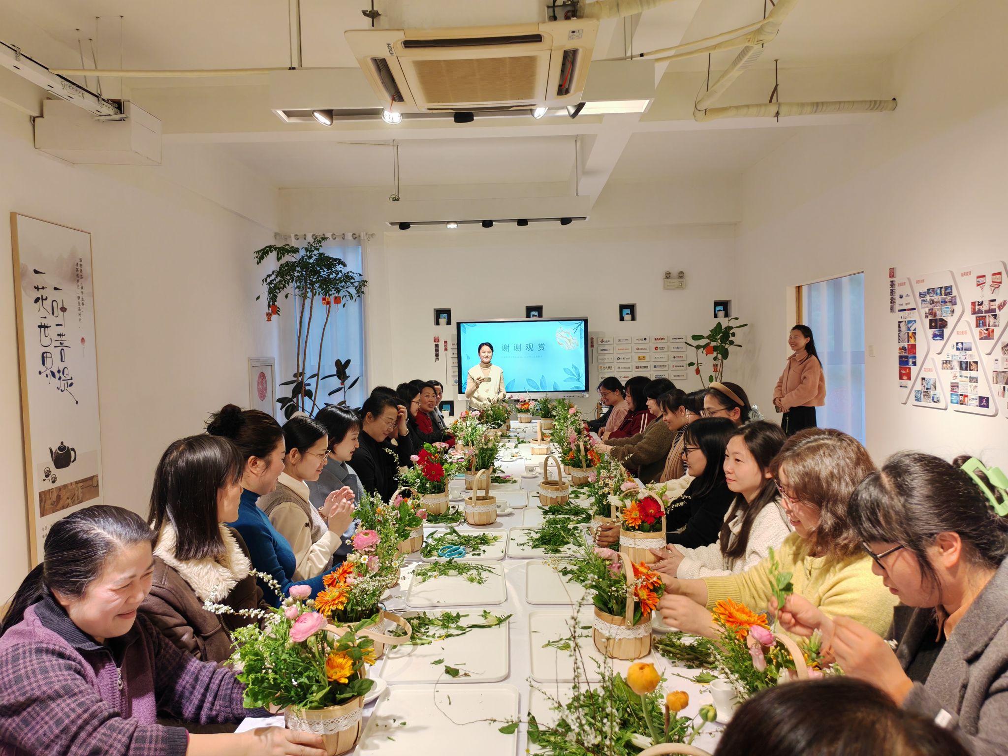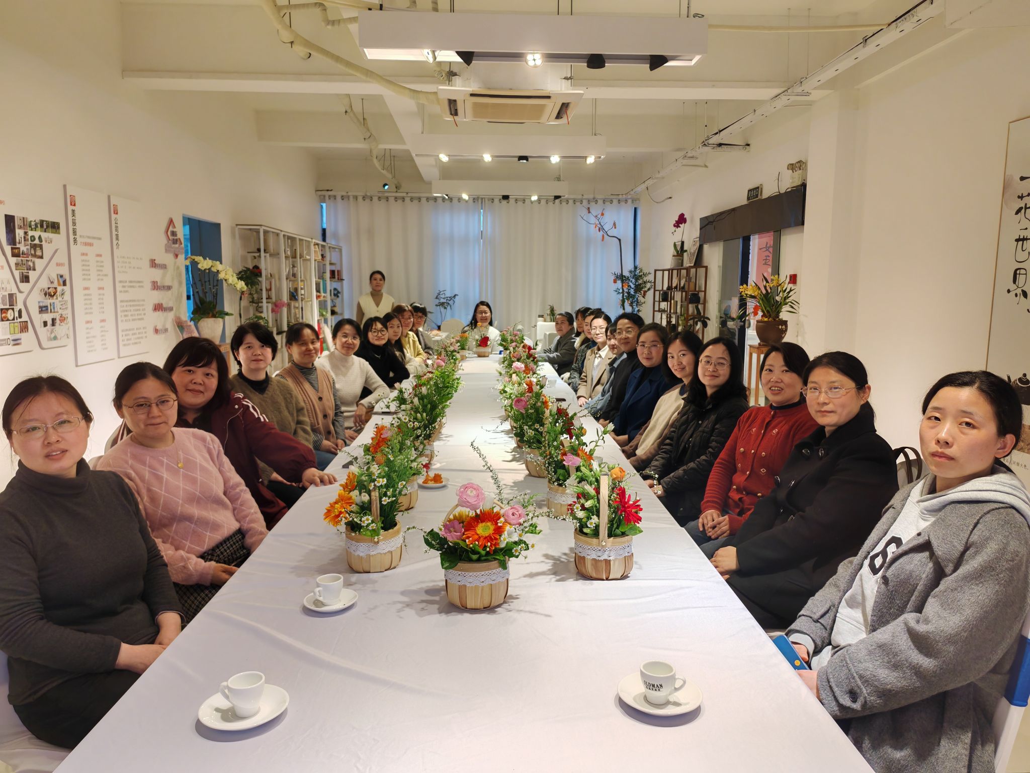 活动中,专业花艺师生动有趣的讲解了插花艺术的起源、基本技巧、花卉搭配以及色彩运用等知识。女老师们纷纷动手实践,发挥创意、 精心搭配、认真创作,制作出一件件独具匠心的花艺作品,将对生活的热爱融入到一花一叶之中。学院30位女教职工齐聚一堂,在花香与欢笑中度过了一个温馨而难忘的节日。