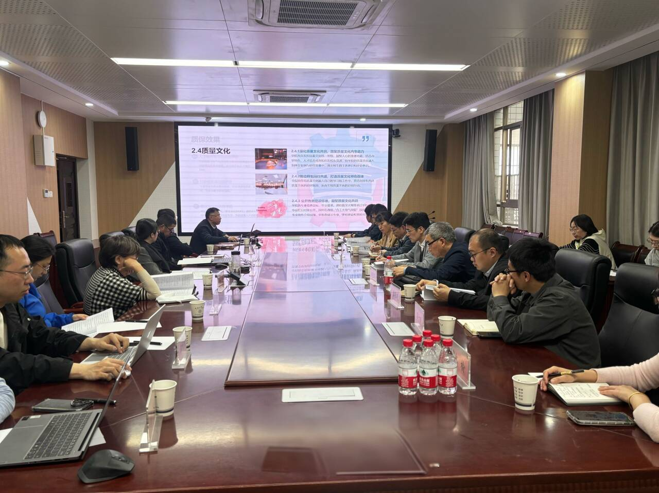 会议开始,副院长黄海宏从学院简介、评估小组组建、工作方案制定等多方面作了本科教育教学自评工作开展情况汇报。围绕党的领导、质量保障能力等方面总结学院自评结果,并重点阐述规范教学过程管理、提升学院智慧化管理等相关举措,强调持续推进教育教学综合改革。随后,参会人员围绕设立电气自动化创新班、论文发表激励制度、教学经费支出等工作细节进行了交流,并就如何进一步改进教育教学工作进行了深入的讨论。