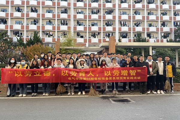 为了用行动践行入党初心、以劳动提升育人水平,2021年11月25日下午三点,合肥工业大学电气与自动化工程学院第66期预备党员班学员在19级辅导员李伟康的带领下,开展主题为“以劳立德,以劳育人,以劳增智”的劳育实践活动,于合肥工业大学屯溪路校区一号楼旧址清理杂草和落叶。