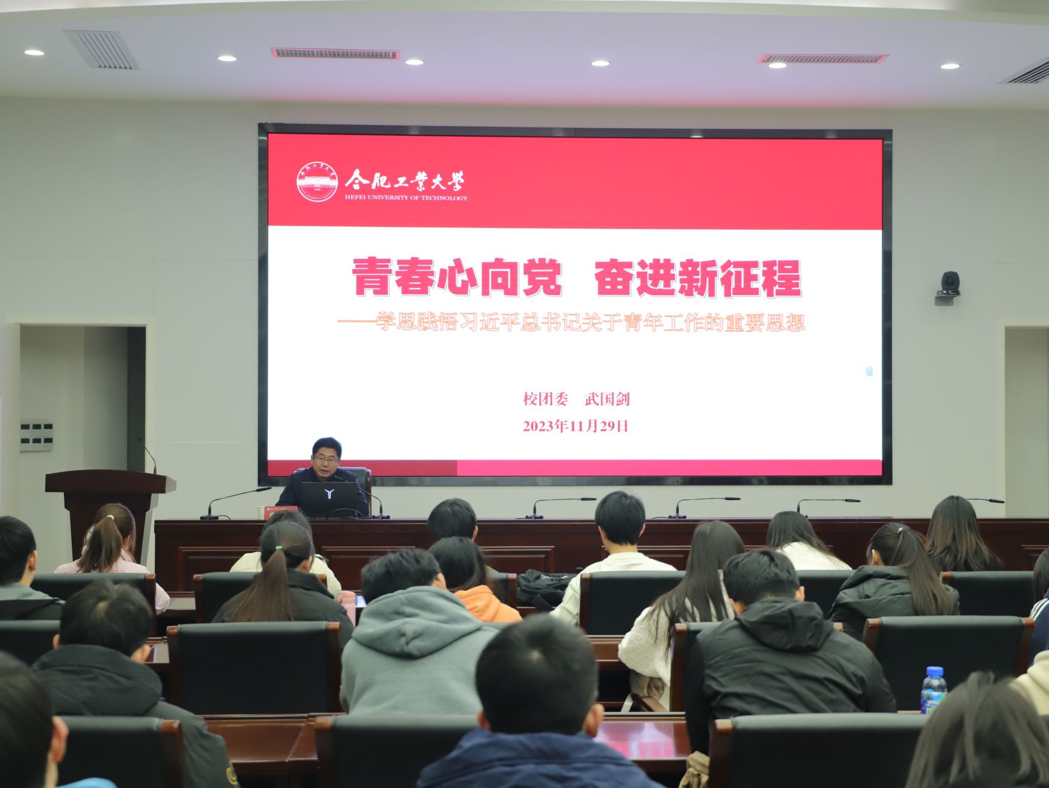 12月1日晚,电气与自动化工程学院“青春心向党,奋进新征程”主题党课在学术会议中心三楼小报告厅举行,合肥工业大学校团委书记兼副部(处)长、全国高校思想政治工作中青年骨干武国剑为全体学员上专题党课。分党校第70期大学生入党积极分子班全体学员参加学习。