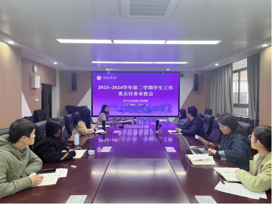 为科学系统谋划学院学生思想政治教育工作,赋能学院学生工作高质量发展,全方位助力学生成长成才。3月11日,电气与自动化工程学院在逸夫楼1009会议室开展2023-2024学年第二学期学生工作重点任务布置会,学院相关负责人和全体辅导员参加会议。