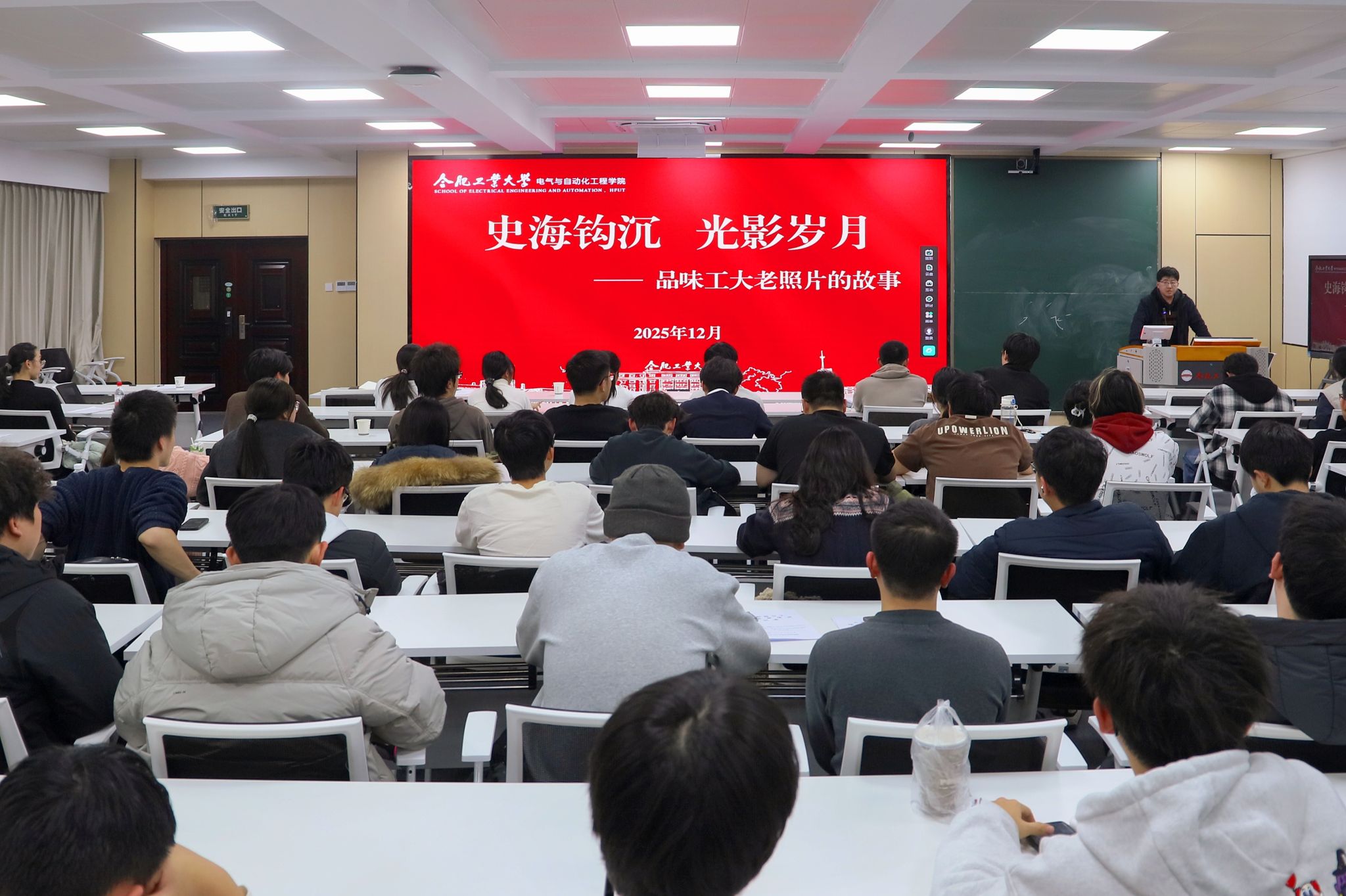12月29日,电气与自动化工程学院于逸夫楼1005教室等开展“史海钩沉,光影岁月”校园影像品析活动,学院相关负责教师、本科生第六党支部百余名成员参加。