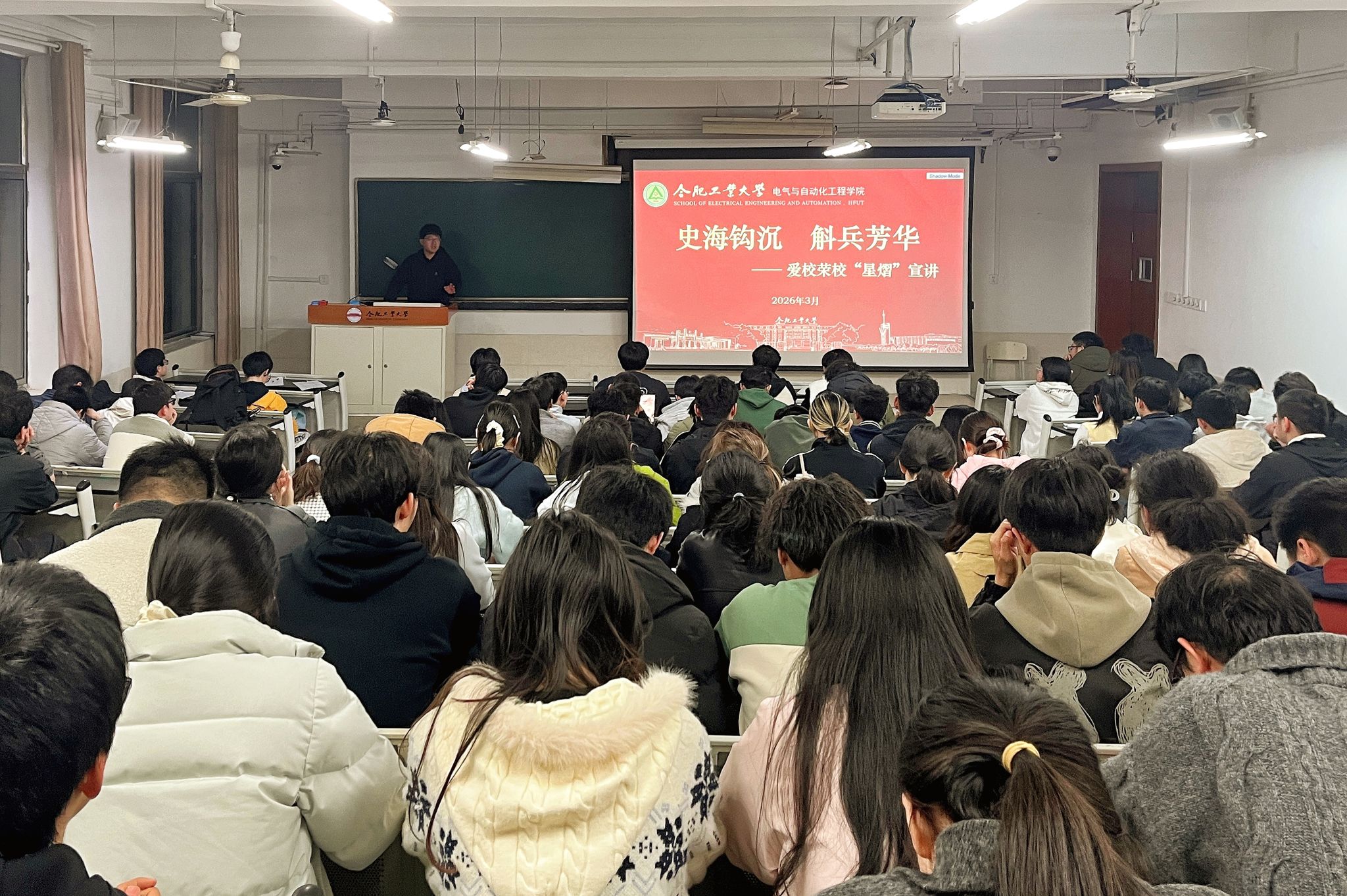 3月26日,电气与自动化工程学院于主教学楼328室开展“史海钩沉,斛兵芳华”爱校荣校宣讲活动。学院相关负责教师、本科生第六党支部150余名学生参加。