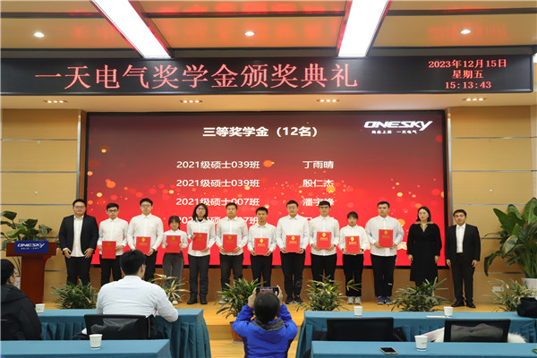 12月15日,电气与自动化工程学院赴安徽一天电气技术股份有限公司开展2023年“一天电气奖学金颁奖仪式暨劳动教育实践基地签约授牌仪式”活动,获奖学生和学院相关领导老师参加活动。