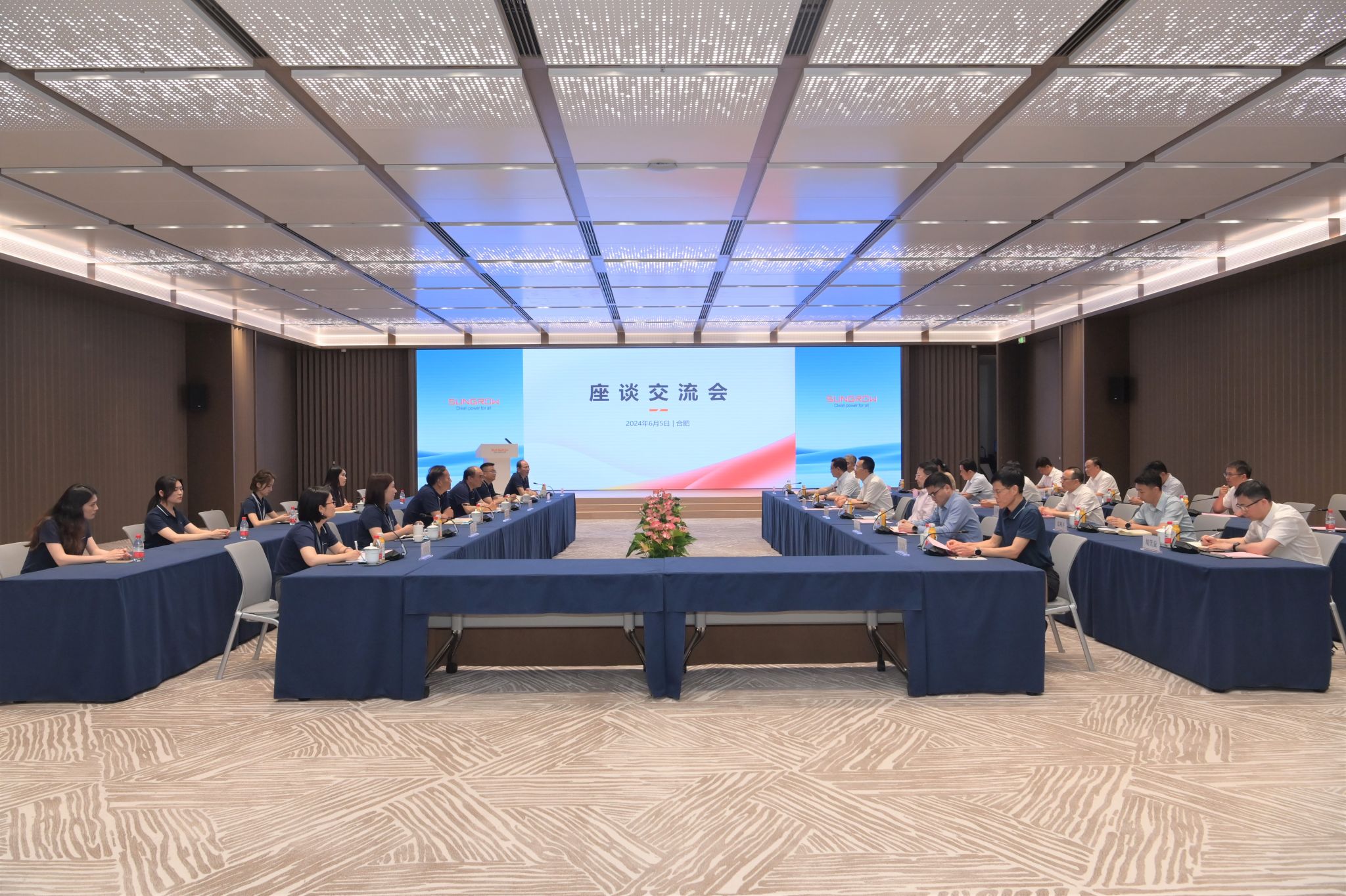 在调研座谈会上,曹仁贤对学校代表团一行的来访表示热烈欢迎,对母校多年来的培养和支持表示衷心感谢。曹仁贤表示,合肥工业大学与阳光电源有着不可替代、不可复制的情感联系和合作关系。希望校企双方以此次调研为契机,持续推动融合发展,在人才联合培养、科技创新研发、雇主品牌共建等领域不断深化合作内容、拓展合作领域、扩大合作成果,校企融合取得更加优异的成绩。曹仁贤表示,母校情深、相伴一生。母校80周年校庆即将来临,作为合肥校友会会长,将更好发挥桥梁纽带作为,和广大校友一起关注支持母校建设发展,为喜迎校庆贡献应有力量。