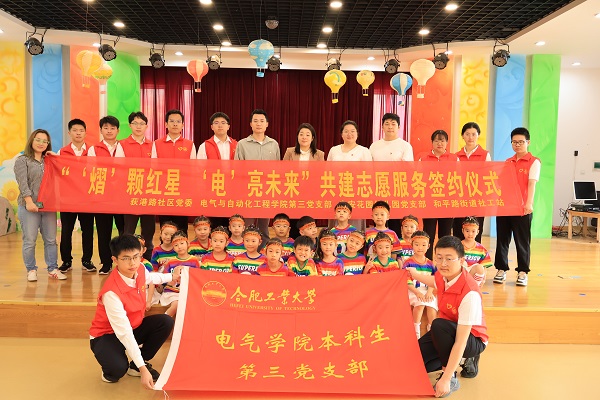 为引导青年学生党员自觉服务社会、锻炼自我、塑造品质、引领社会新风尚。5月25日,电气与自动化工程学院本科生第三党支部“‘熠’颗红星,‘电’亮未来”主题志愿活动在瑶海区荻港路社区来安花园幼儿园顺利开展。